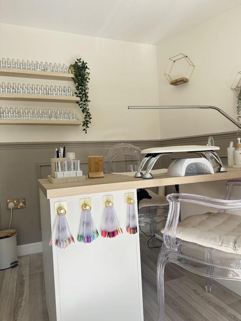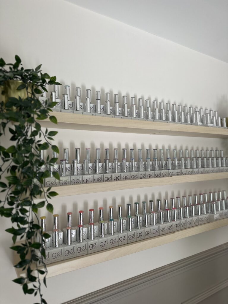 The Gel Studio boasts a serene interior made up of soft beige and cream tones, ‘finished with faux plants to ensure the space feels calm and natural’. One of the key features is Vienna’s wall display of gel polishes: “It’s a real show-stopper,” she comments.