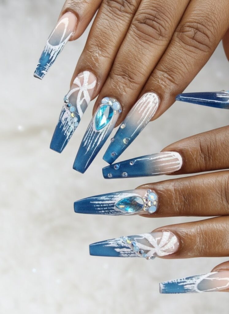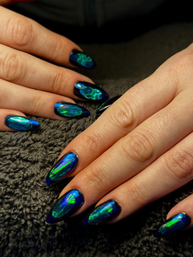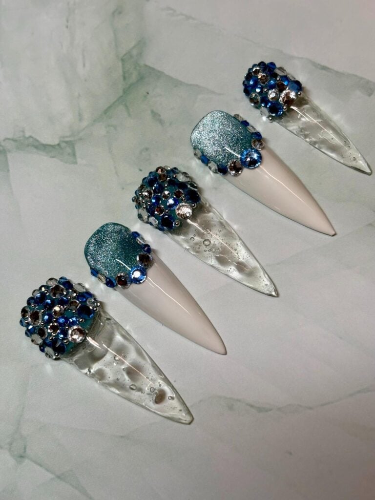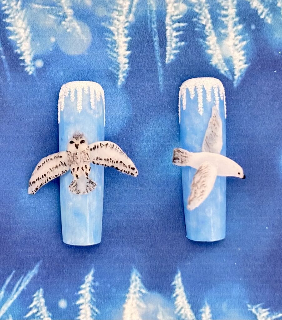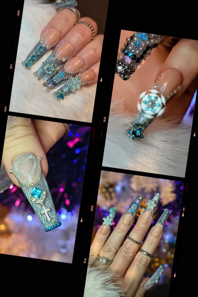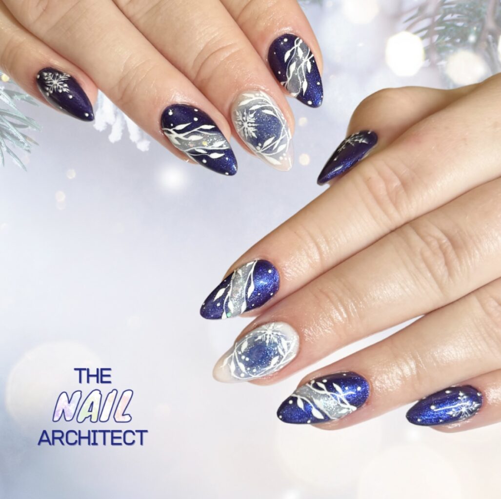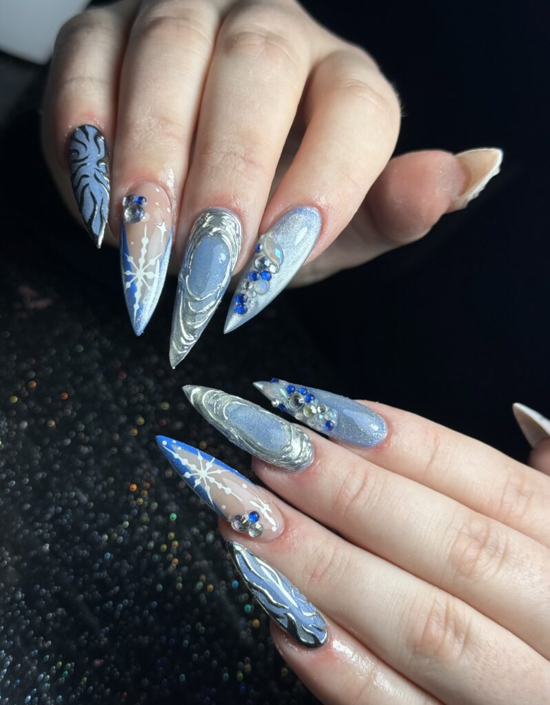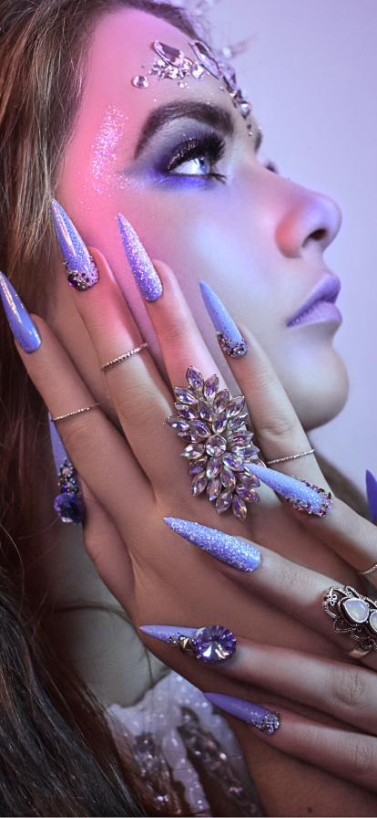 “Kellie’s use of encapsulation added beautiful depth and dimension, while the inclusion of crystals introduced an extra layer of interest. The image was well photographed, with a clear focus on the nails, allowing the attention to detail in this style to truly shine.”