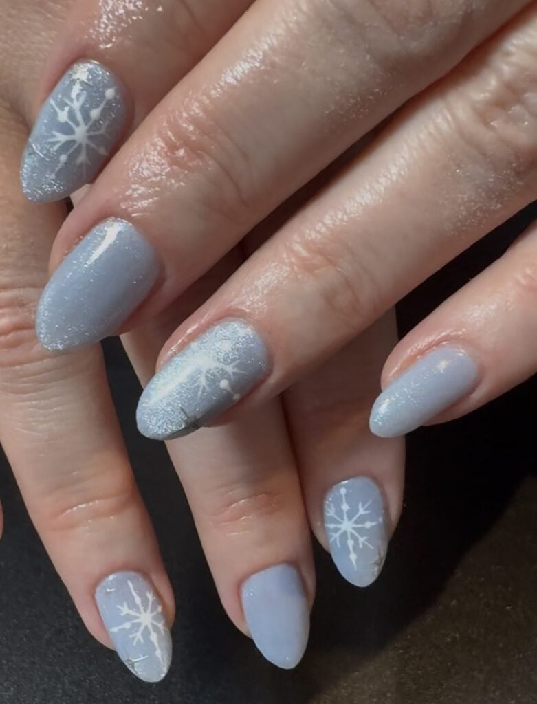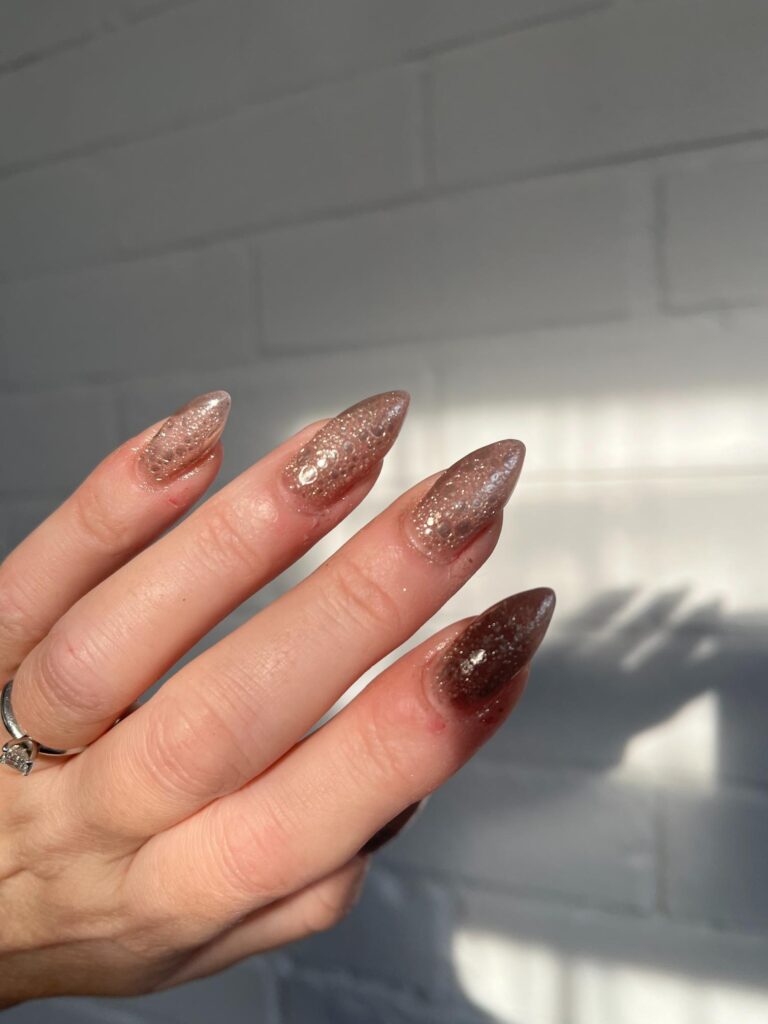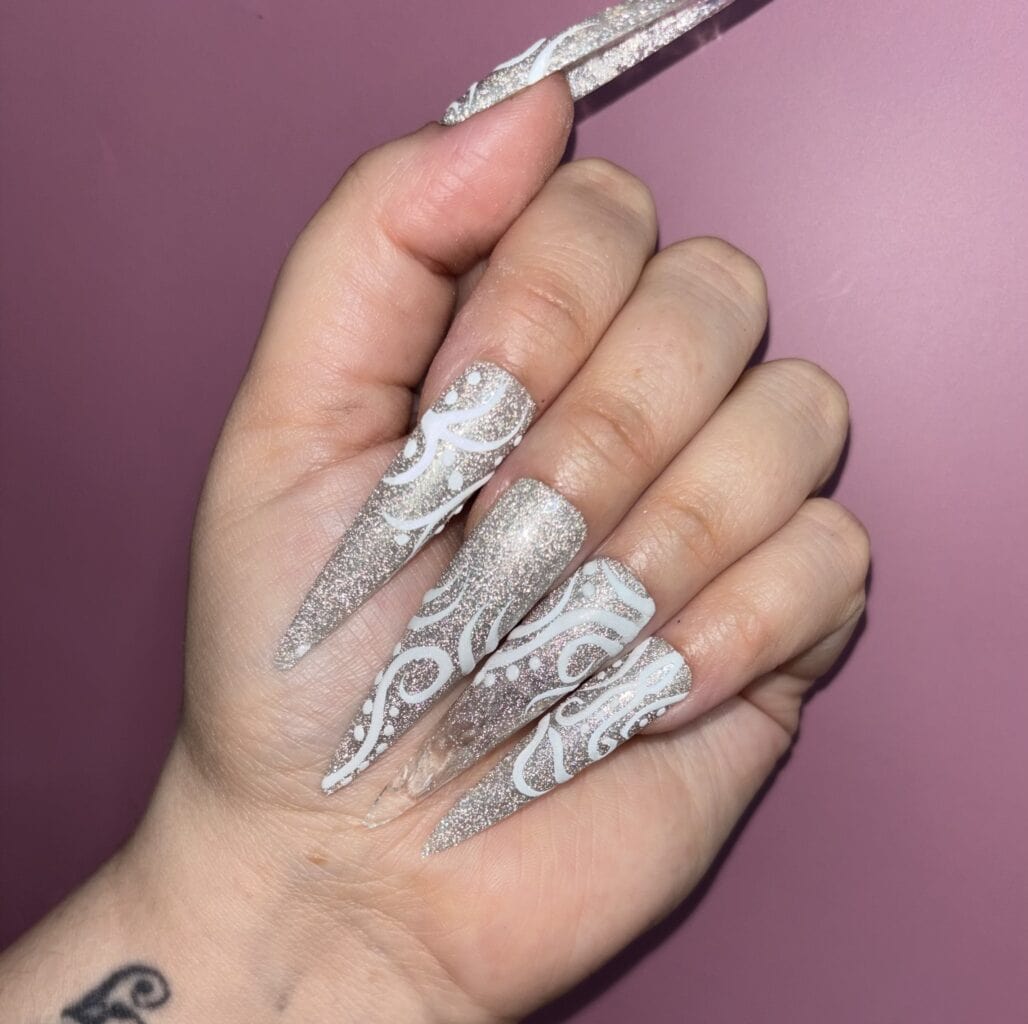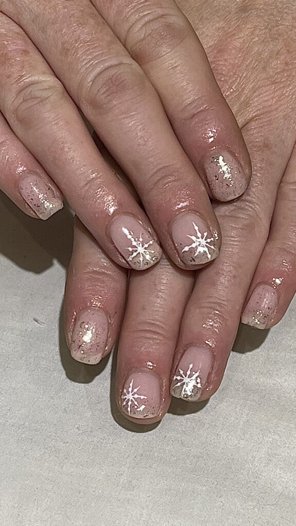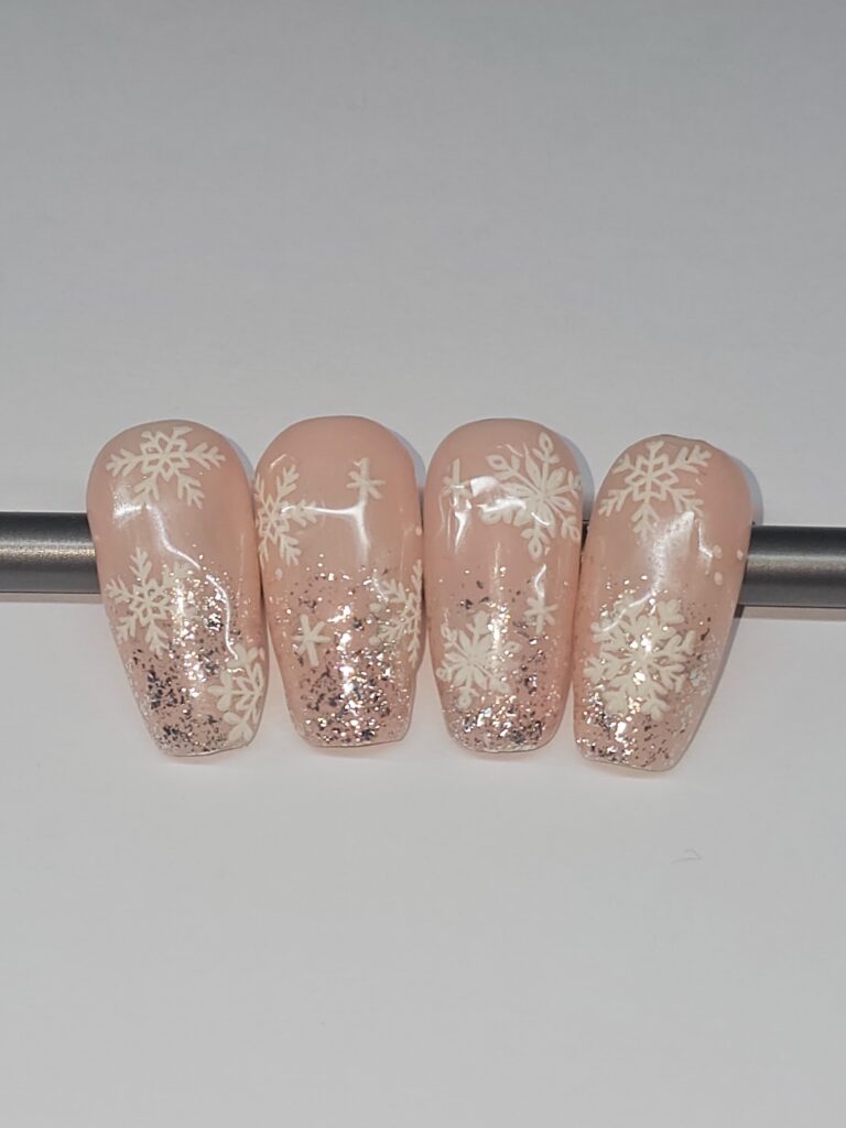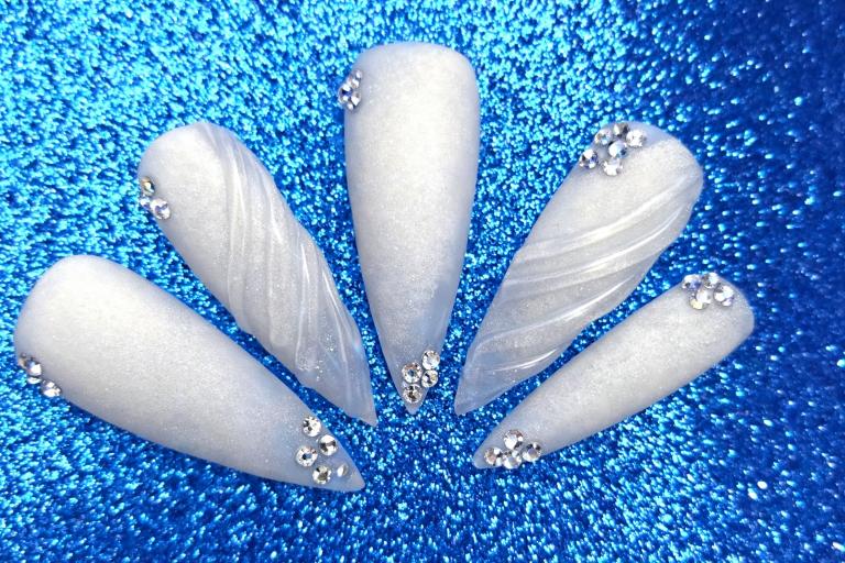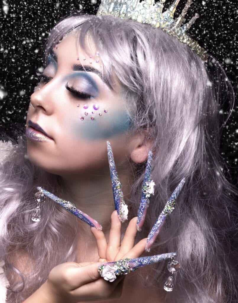 Victoria comments: “The nail enhancements by Kellie were executed to a very high standard. All nails were consistent in length and shape, and the surrounding skin appeared healthy and free from dust. The design perfectly captured the brief, Frosted Fingertips.