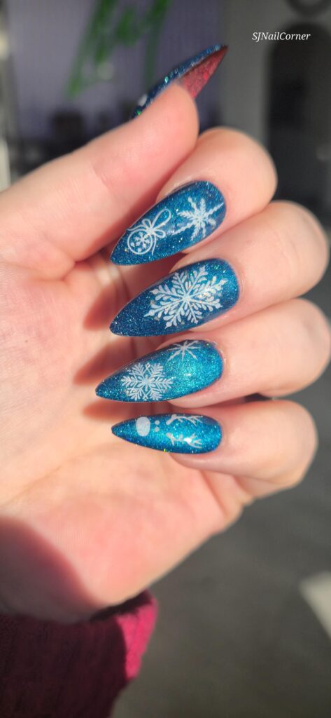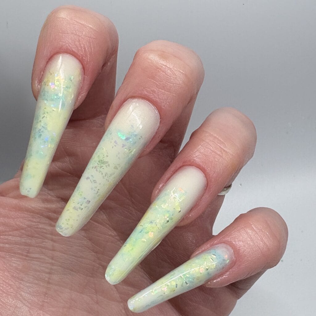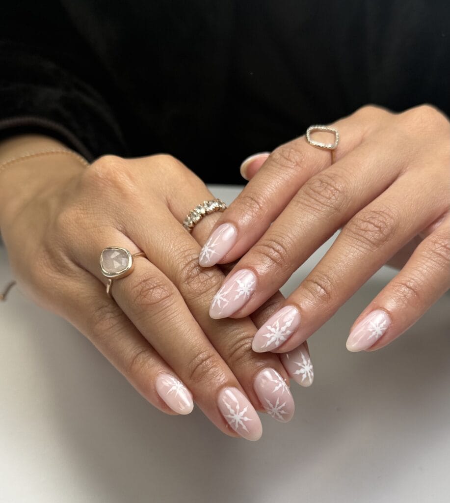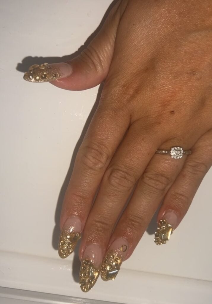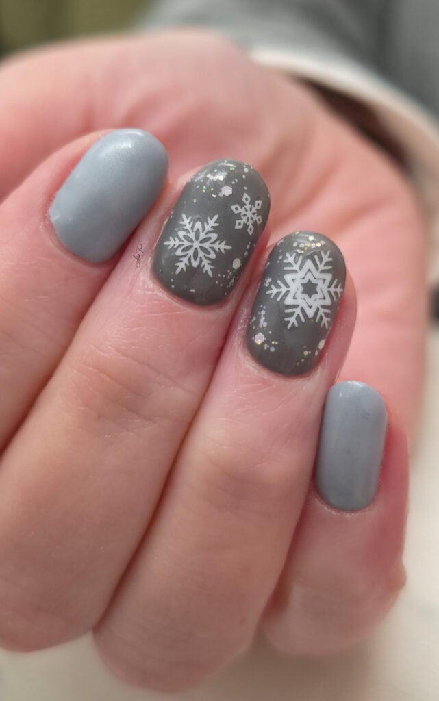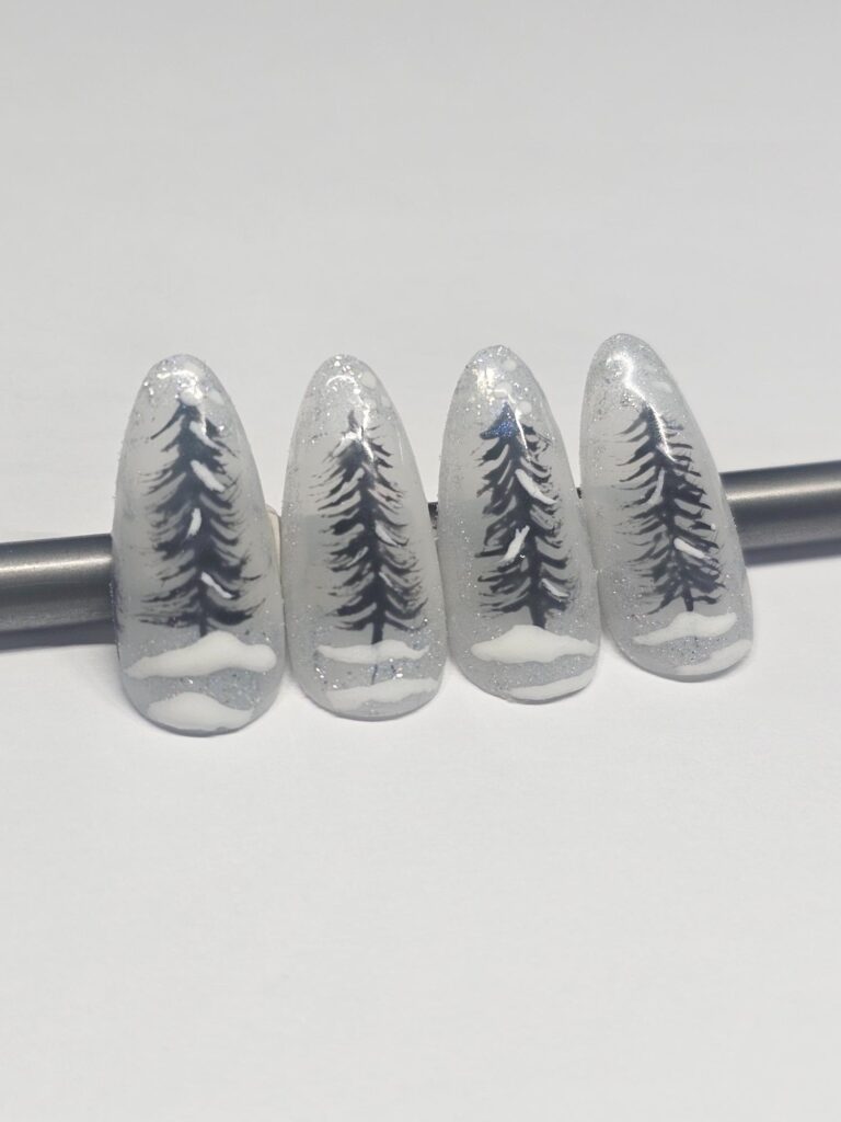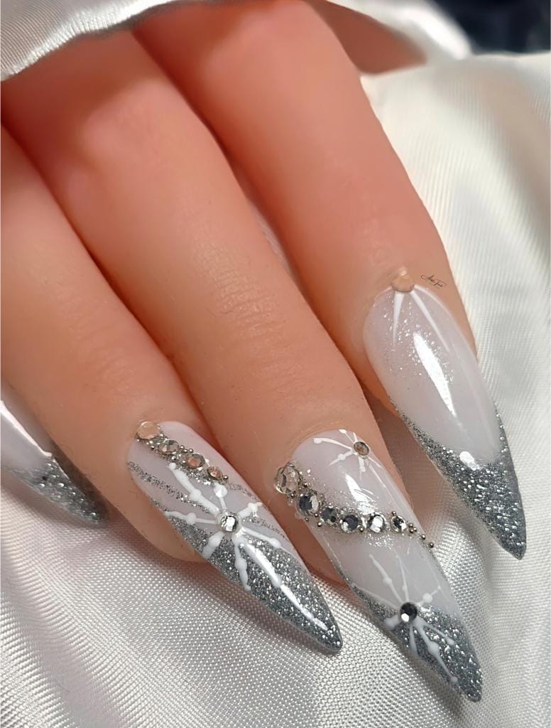 Victoria comments: “The nail enhancements by Kellie were executed to a very high standard. All nails were consistent in length and shape, and the surrounding skin appeared healthy and free from dust. The design perfectly captured the brief, Frosted Fingertips.