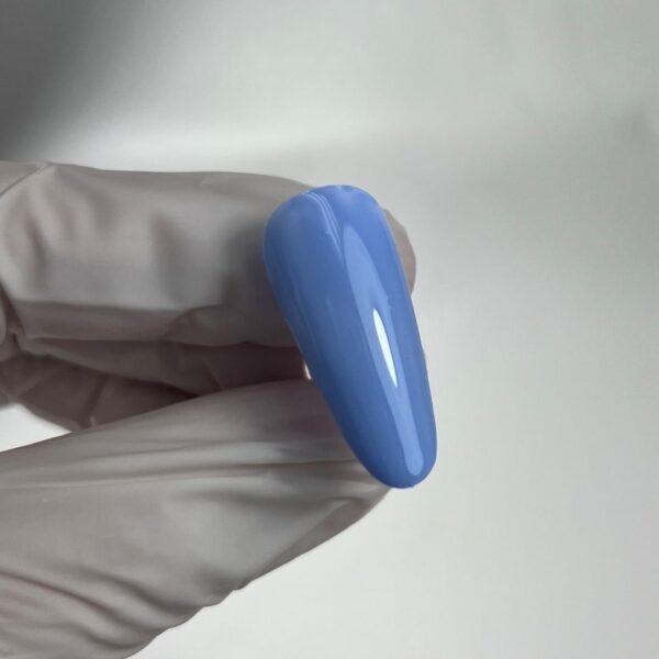 Apply your chosen gel polish base coat and cure, before applying two thin layers of blue gel polish. Cure after each layer.