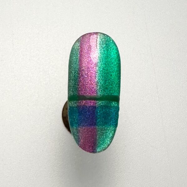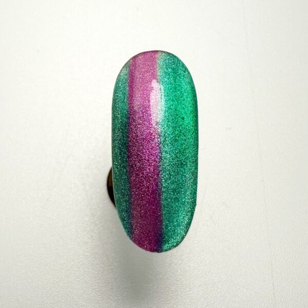 Paint over the remaining stripe of Champagne-coloured or white cat eye gel polish on all nails using a lilac-pink jelly gel polish. Cure.