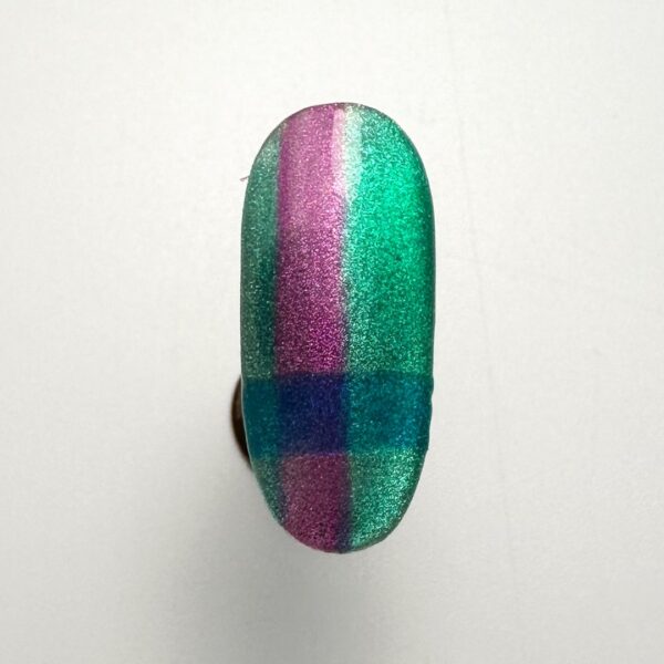 “This tartan shimmer nail style is fun, elegant and pairs beautifully with a black tie event outfit,” she says. “The colour contrasts make the design pop, and tartan is a timeless autumn/winter pattern.”