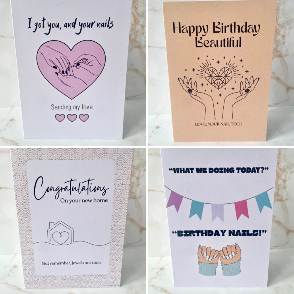 “As a busy nail tech and mother – and someone who grabs greetings cards last-minute or can forget to buy them, I realised I needed to start stockpiling cards,” Donna continues. “But then I thought, ‘Why not go one step further, and design my own cards for the nail obsessed?‘.